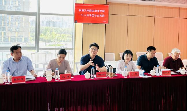 会上,黄向荣介绍了天津商务职业学院发展历程、专业设置、人才培养、招生就业、校企合作等方面情况。白秋实介绍了武清区位条件、人才政策、产业基础和创业环境等情况。闫文杰介绍了武清开发区发展情况、主导产业、发展规划、人才引育等情况。双方围绕人才储备培养、学生实习就业、校企就业合作等方面进行了深入交流。