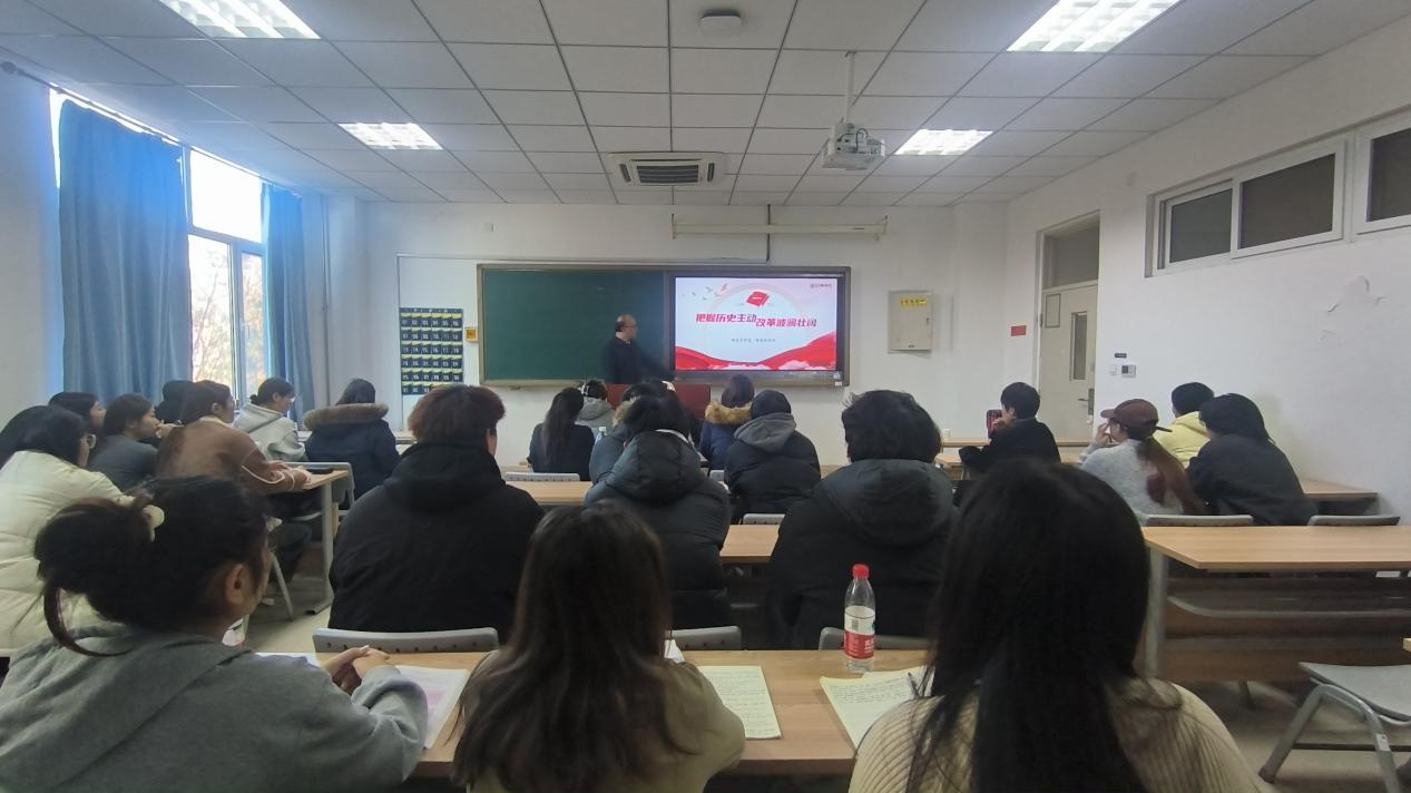 随后,副校长武春平以“把握历史主动,改革波澜壮阔”为主题为学生讲形势与政策课,以我国当前面临的国内外复杂形势为切入点,深入剖析了全面深化改革的紧迫性与必要性。通过生动翔实的案例数据阐述了我国在经济、政治、文化、社会、生态文明等领域取得的重大改革成果。鼓励学生们关注国家政策动态,努力学习专业知识,积极投身社会实践,为改革事业贡献自己的力量。