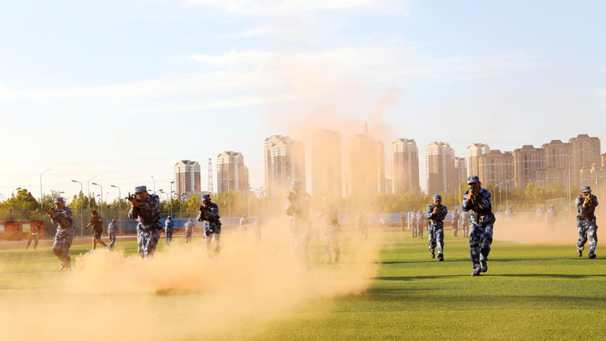 擒敌拳凌厉如风、刺杀操刚劲有力,警棍盾牌、战场救护、战术对抗等实战化项目演示,展现了商职学子敢打敢拼的精神风貌。