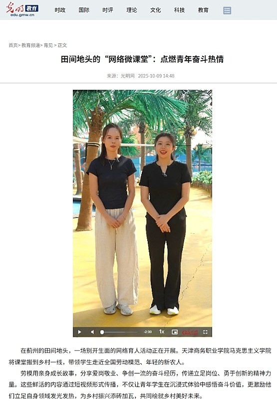 在蓟州的田间地头,一场别开生面的网络育人活动正在开展。天津商务职业学院马克思主义学院将课堂搬到乡村一线,带领学生走近全国劳动模范、年轻的新农人。