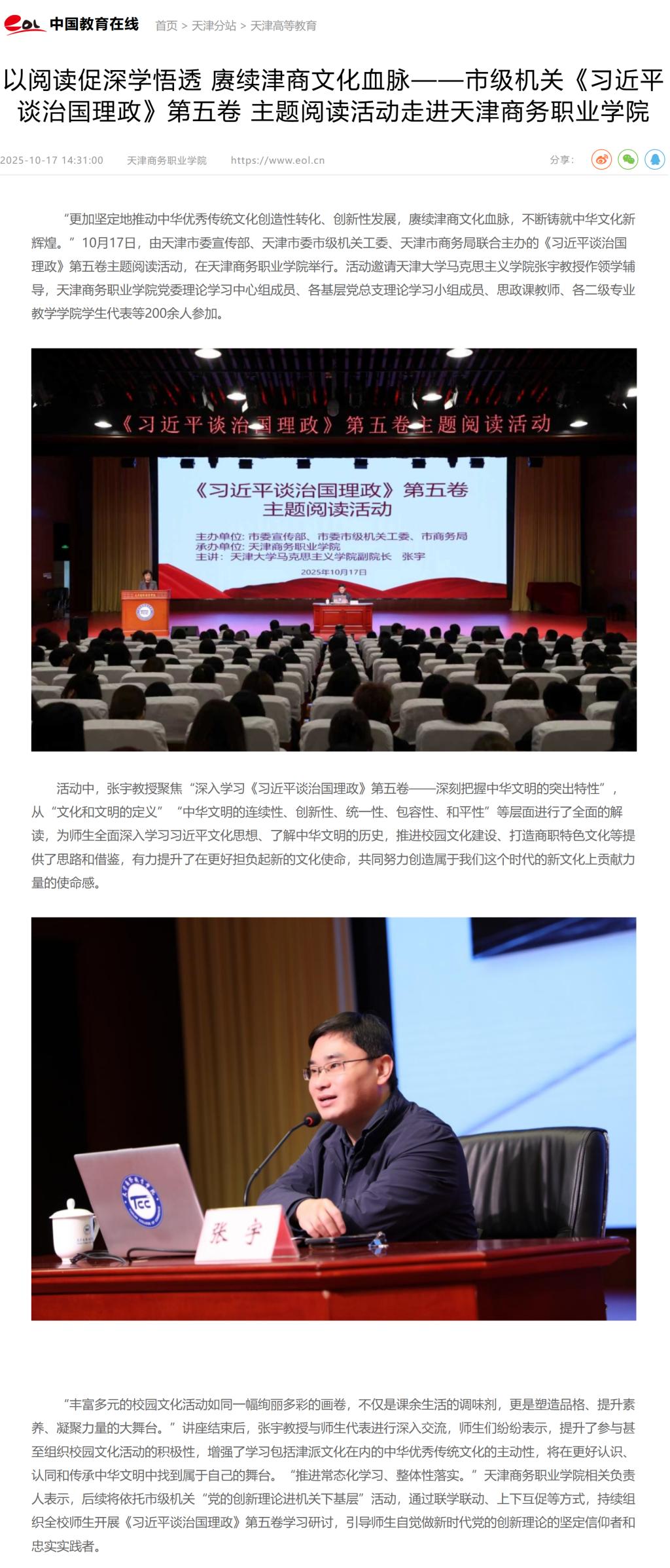 媒体关注 | 以阅读促深学悟透 赓续津商文化血脉——市级机关《习近平谈治国理政》第五卷主题阅读活动走进天津商务职业学院