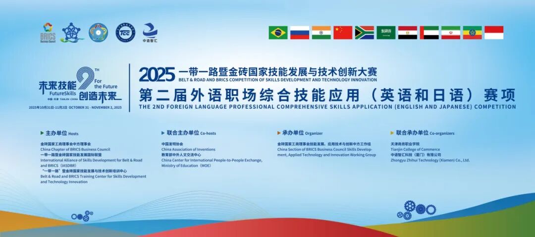 逐梦天津,技绽未来!2025“一带一路”暨金砖国家技能发展与技术创新大赛之第二届外语职场综合技能应用(英语和日语)赛项决赛将于10月31日—11月2日在天津商务职业学院举办。