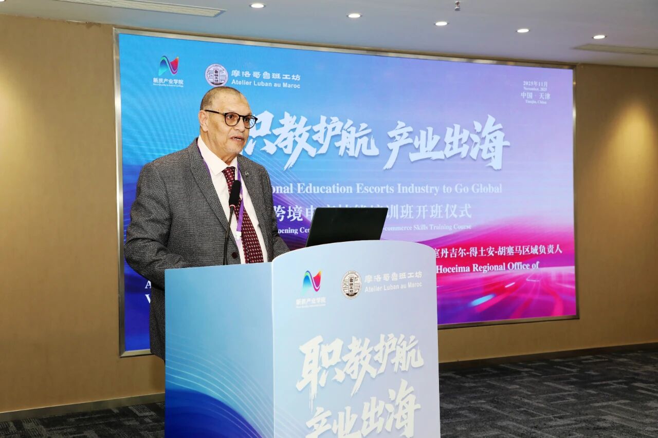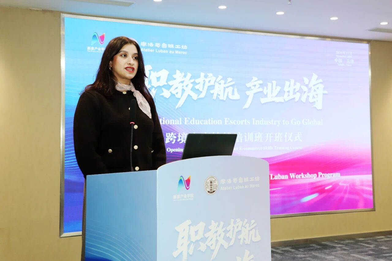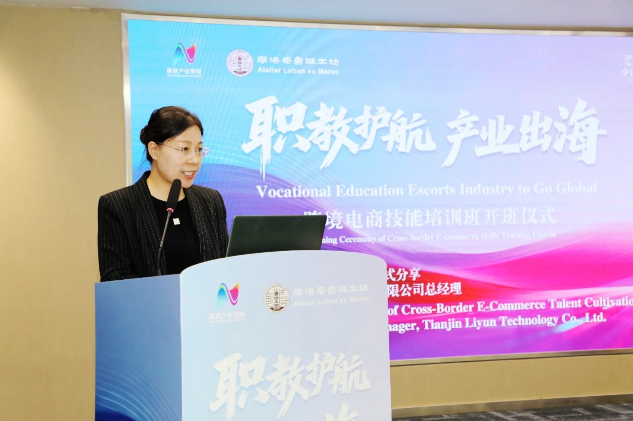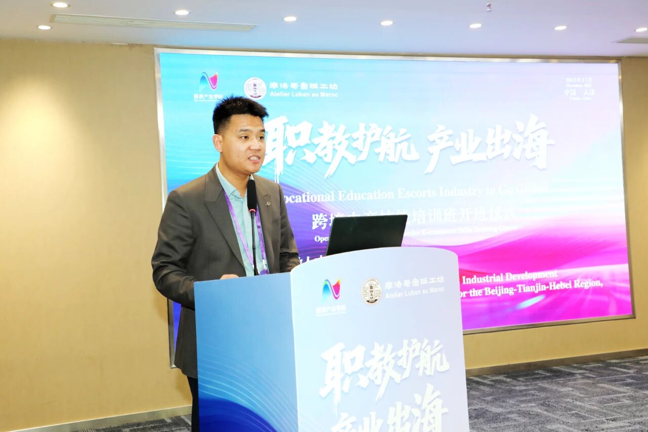 2025年11月14日,“职教护航、产业出海”跨境电商技能培训班开班仪式在天津利云科技有限公司会议厅举行。本次活动由天津商务职业学院与摩洛哥职业教育与促进就业办公室共同推动,天津利云科技有限公司承办,旨在系统性地为摩洛哥鲁班工坊教师分享跨境电商领域的实战路径。