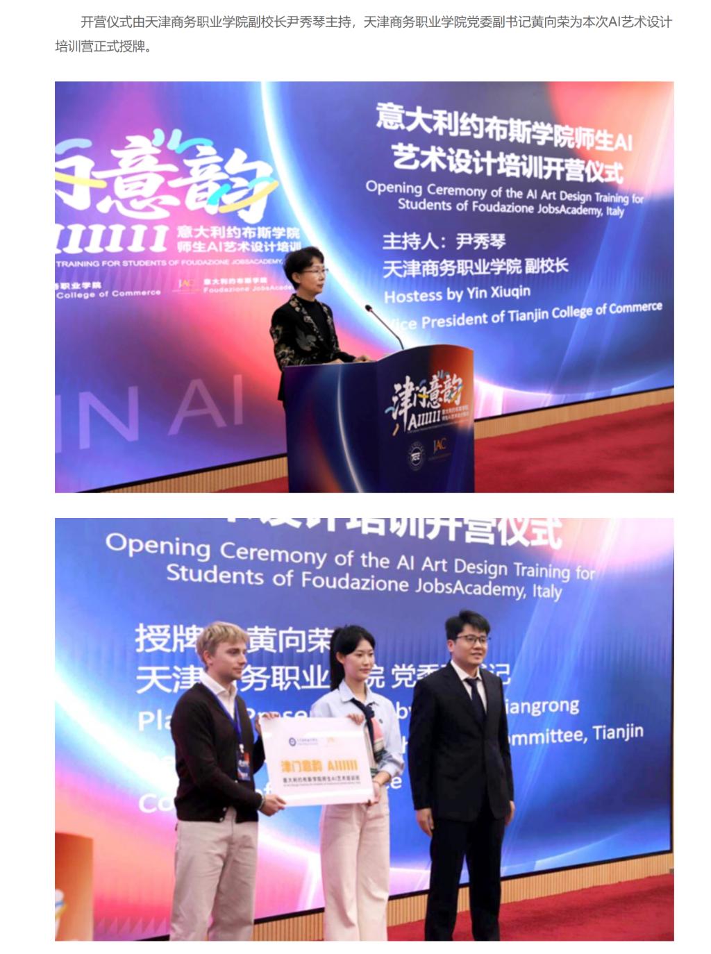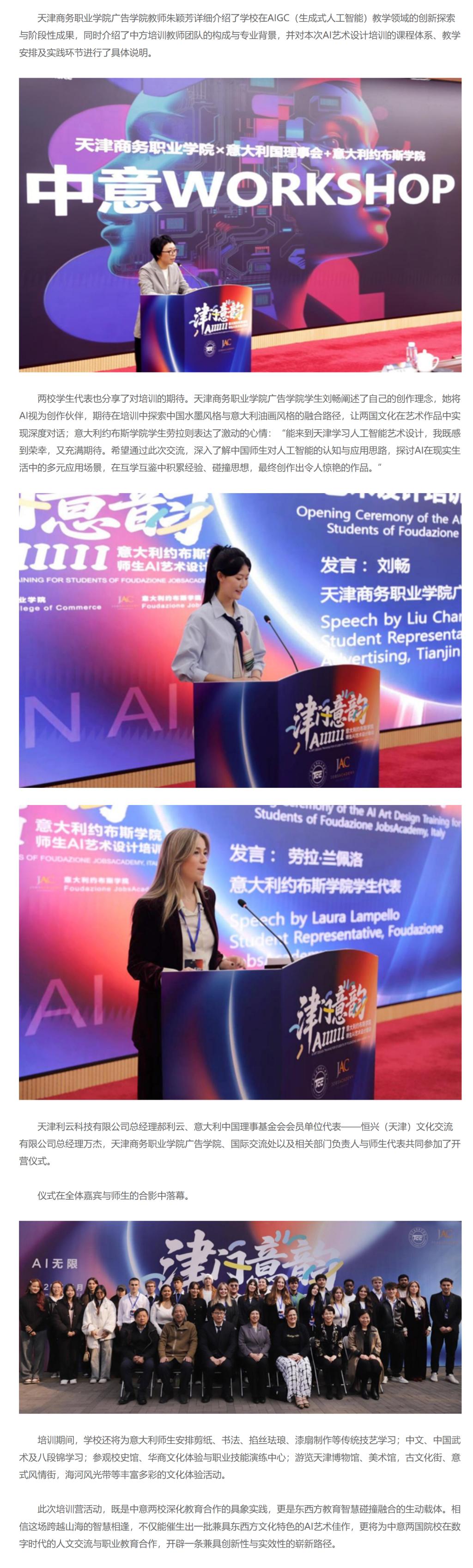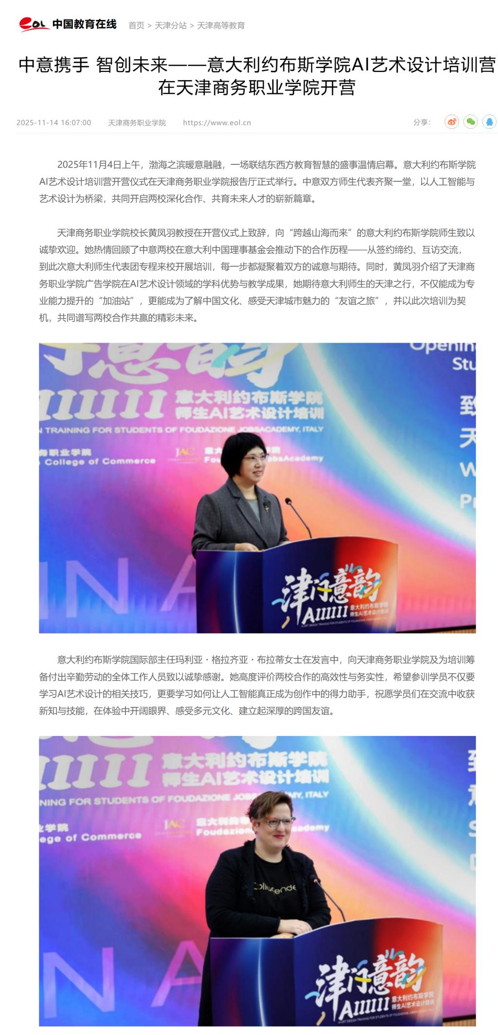 媒体关注 | 中国教育在线报道我校中意携手 智创未来——意大利约布斯学院AI艺术设计培训营在天津商务职业学院开营