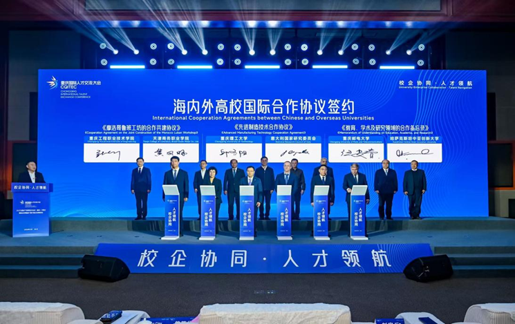 大会现场,黄凤羽代表学校与重庆工程职业技术学院、上海汽车电驱动摩洛哥有限公司签订了校企国际学生联合培养合作协议。为积极响应服务“一带一路”倡议,落实中非合作论坛能力建设行动内容,进一步加强中国与摩洛哥在职业教育领域的合作,三方将共同推动摩洛哥国际学生学历教育专本硕直通车项目及学生实习就业环节的有效链接。未来,两校将与上海汽车电驱动摩洛哥有限公司一道围绕当地产业需求,联合开发符合摩洛哥国情的专业课程体系,组建高水平师资团队,开展技能培训、技术服务与文化交流活动,搭建起中摩技能人才培养与文化互鉴的桥梁,服务当地经济社会发展,依托现有摩洛哥鲁班工坊平台,推动校企协同联合培养新模式的实施。