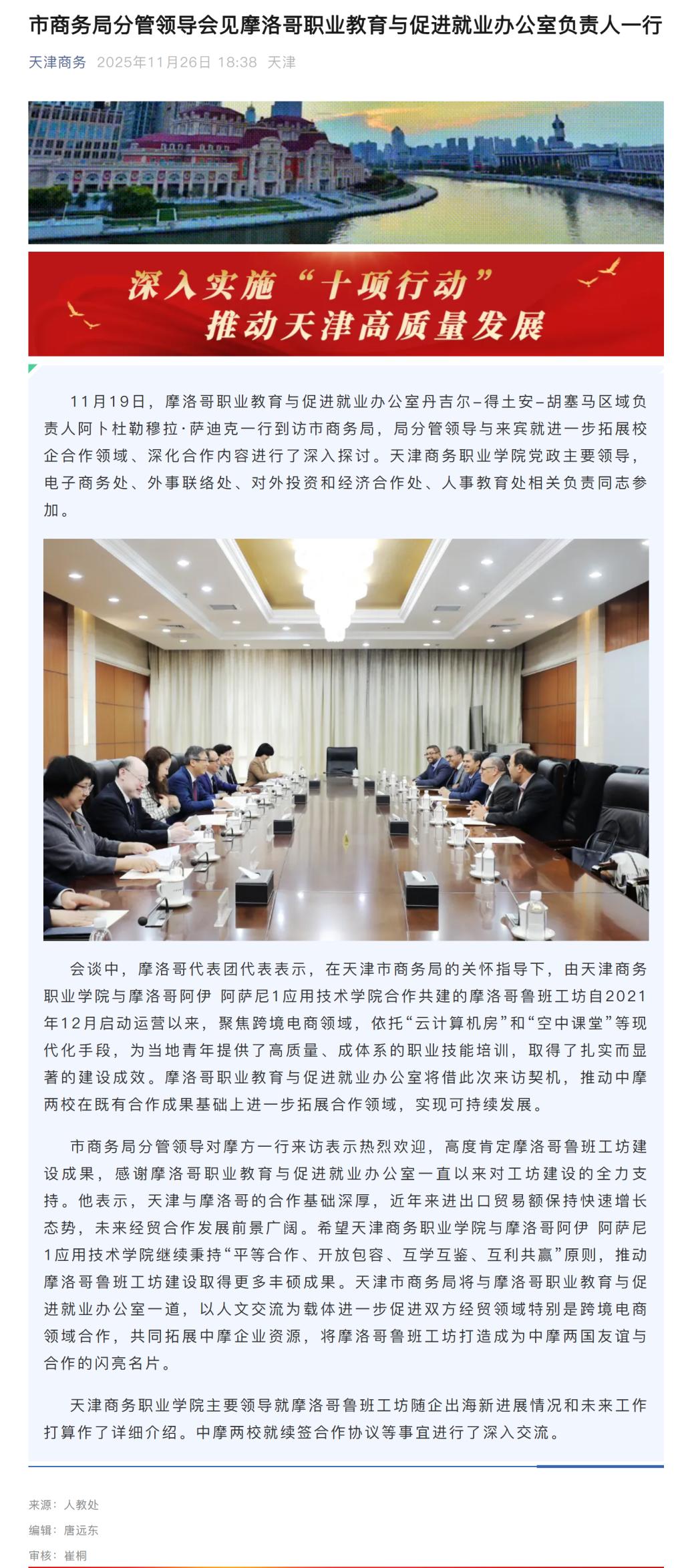 媒体关注 | 【天津商务】市商务局分管领导会见摩洛哥职业教育与促进就业办公室负责人一行