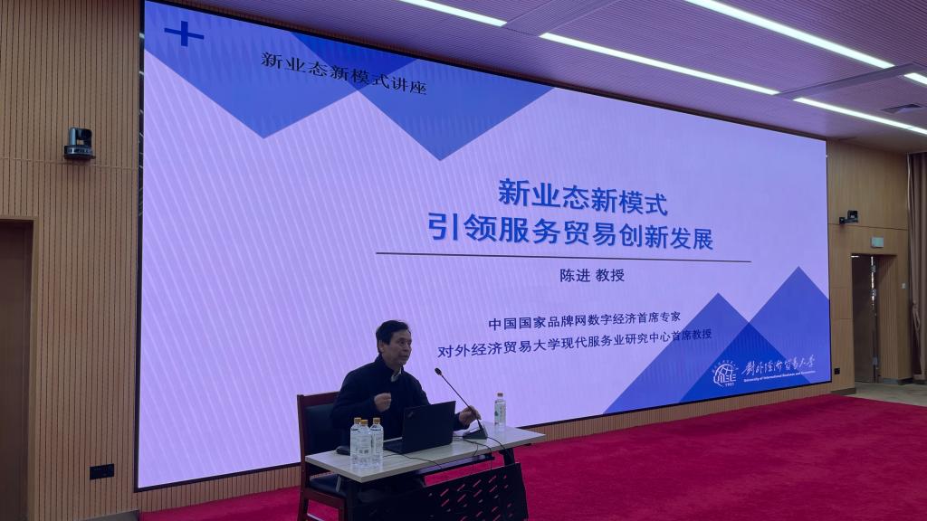 为精准对接全球服务贸易发展新趋势,助力学术研究与专业建设,在学校学术活动周期间,国际贸易学院精心策划并举办了“新业态新模式 引领服务贸易创新发展”专题学术讲座。本次讲座邀请到国务院特殊津贴专家、中国国家品牌网数字经济首席专家、全球电商教育发展联盟执行董事长、对外经济贸易大学现代服务业研究中心首席教授陈进博士作为主讲嘉宾,为学校教师搭建了高端学术交流平台。