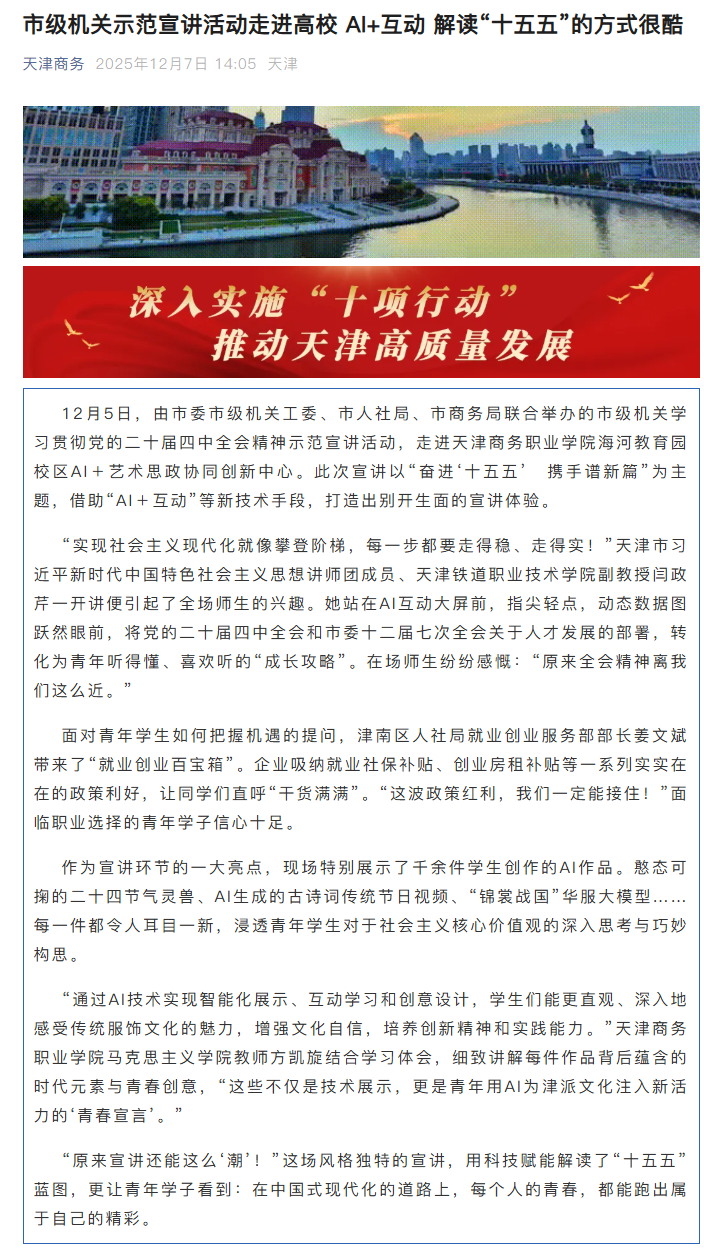 媒体关注 |【天津商务】市级机关示范宣讲活动走进高校 AI+互动 解读“十五五”的方式很酷