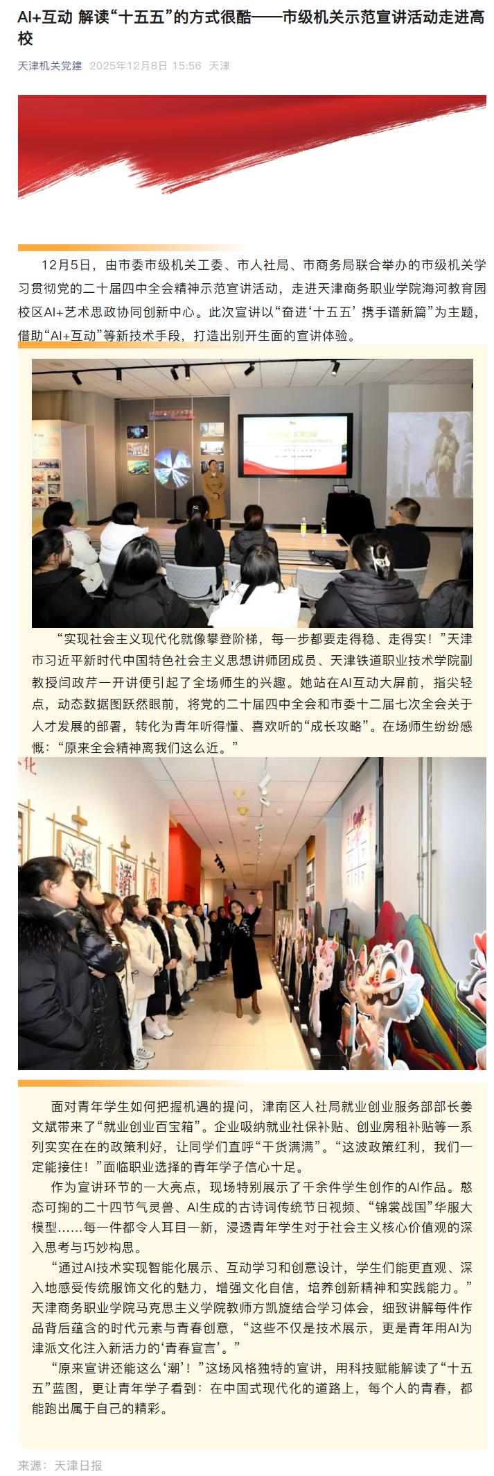 媒体关注 |【天津机关党建】AI+互动 解读“十五五”的方式很酷——市级机关示范宣讲活动走进高校