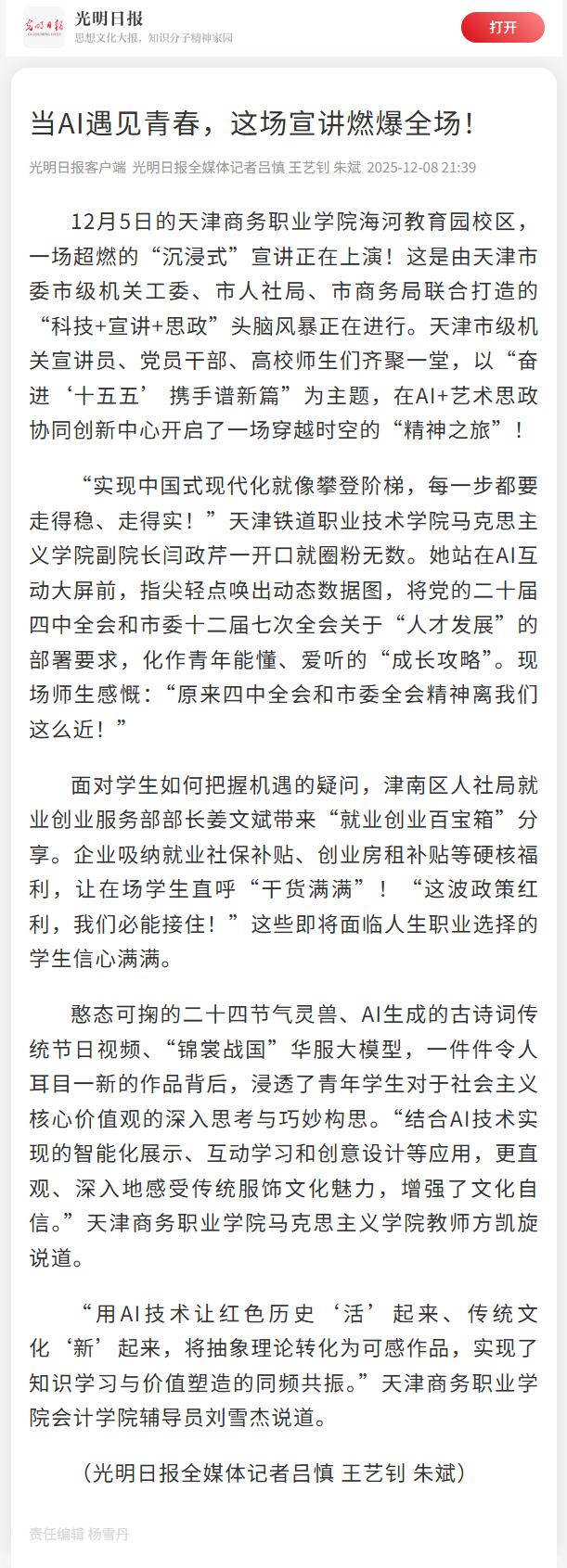 媒体关注 |【光明日报】当AI遇见青春,这场宣讲燃爆全场!