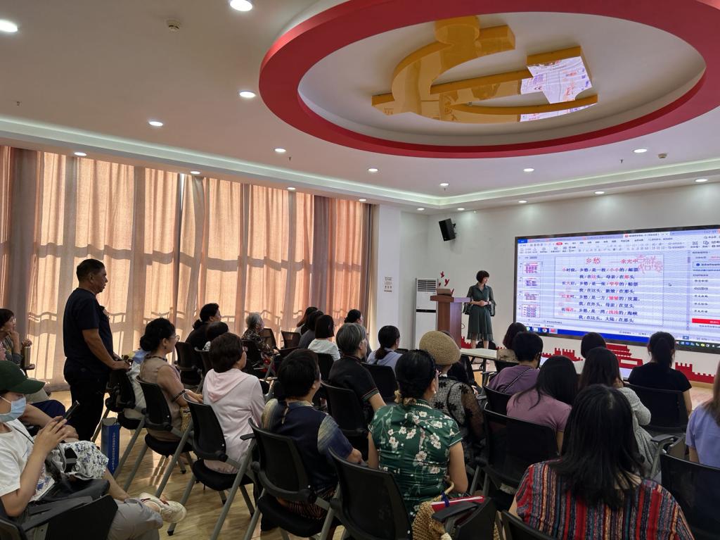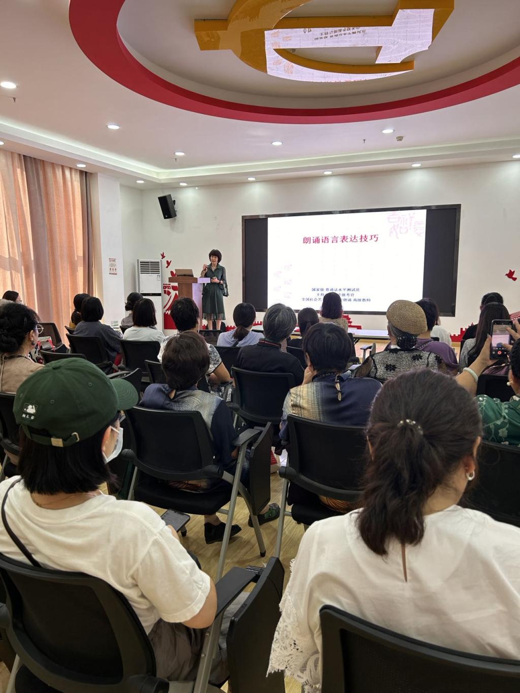 活动中,测试站特聘国测员李梅老师向社区居民讲解了什么是普通话,普通话的意义以及朗诵技巧和规范,提倡大家在日常生活中养成说普通话的习惯,提升规范使用国家通用语言文字的意识和水平。并且深入浅出的从朗诵的定义、意义、阶段、要素等几个方面结合自身演绎为大家示范,现场反响热烈,受到社区居民的高度评价。